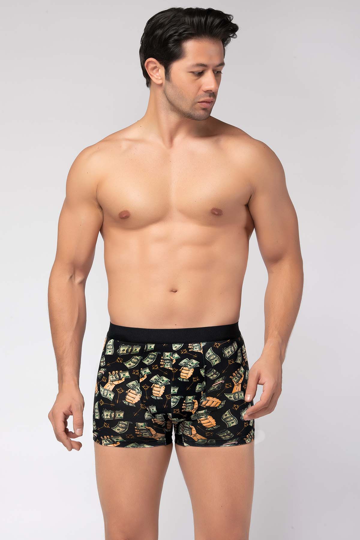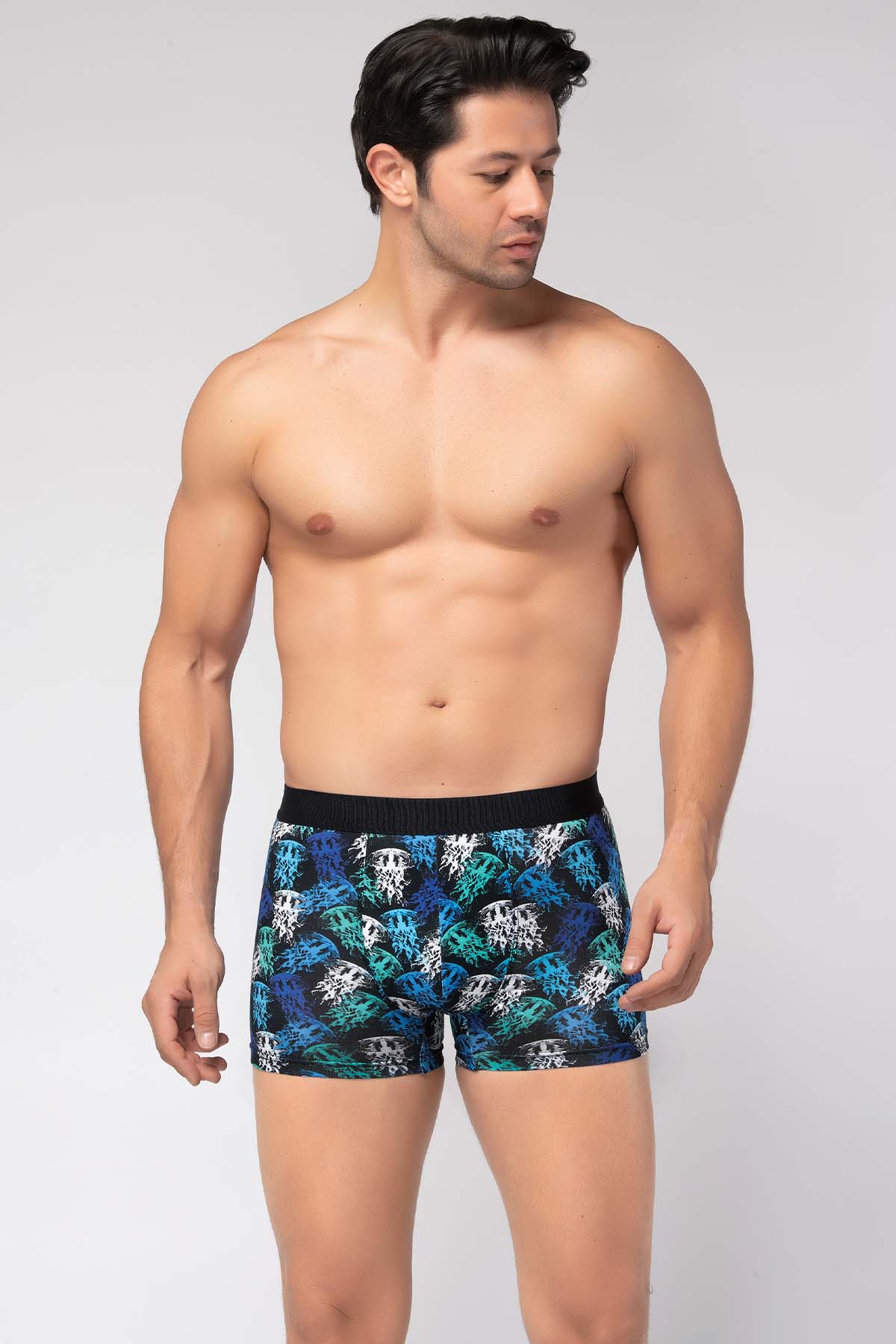 Berrak dijital baskı erkek boxer modeli, özel tasarım ve özel renkleri ile iç giyim stiline hareketli bir görünüm kazandırırken, %95 cotton pamuk ve %5 elastan kumaşı sayesinde rahat ve konforlu hissetmenizi sağlar.