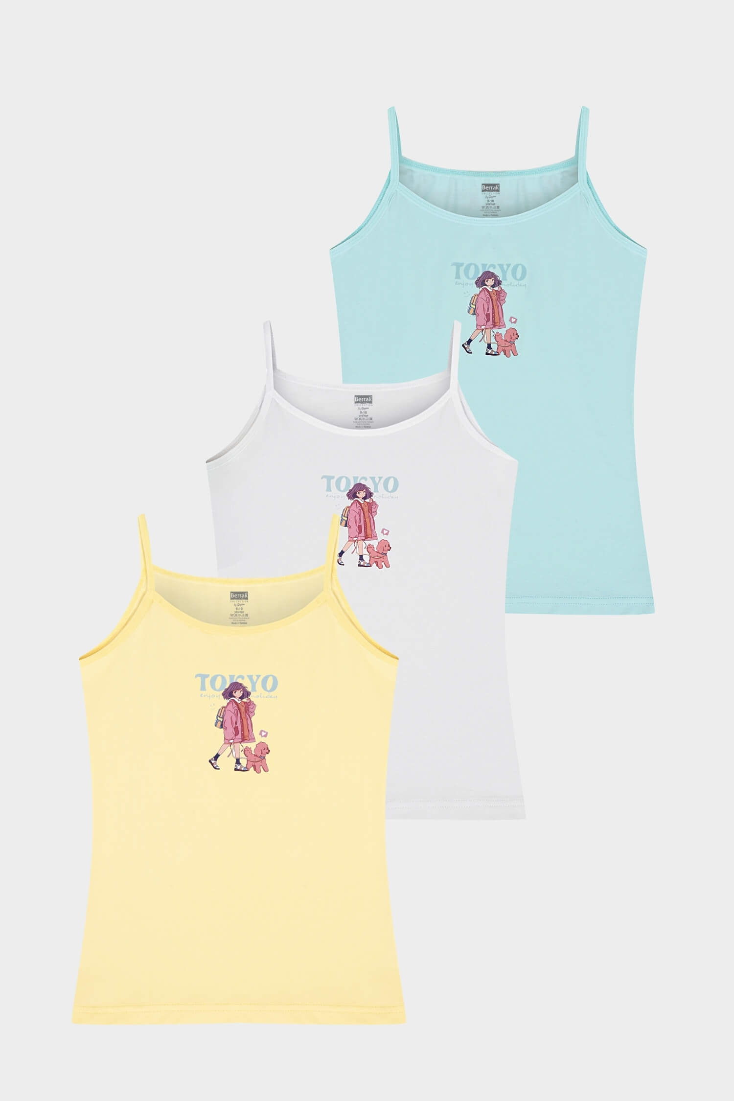 Kız çocukları için tasarlanan bu ince askılı atlet seti, sevimli ve renkli desen detaylarıyla çocukların severek giyeceği bir iç giyim alternatifidir. Üçlü paket halinde sunulan ürün, %95 pamuk ve %5 elastan içeriği sayesinde yumuşak, esnek ve nefes alabilen bir yapı sunar. Atletlerin ön kısmında yer alan tatlı figür baskıları, ürüne eğlenceli ve enerjik bir görünüm kazandırarak çocukların tarzına neşe katar. İnce askılı tasarımı yaz aylarında tek başına, serin havalarda ise kıyafetlerin altında rahatlıla kullanılabilir.