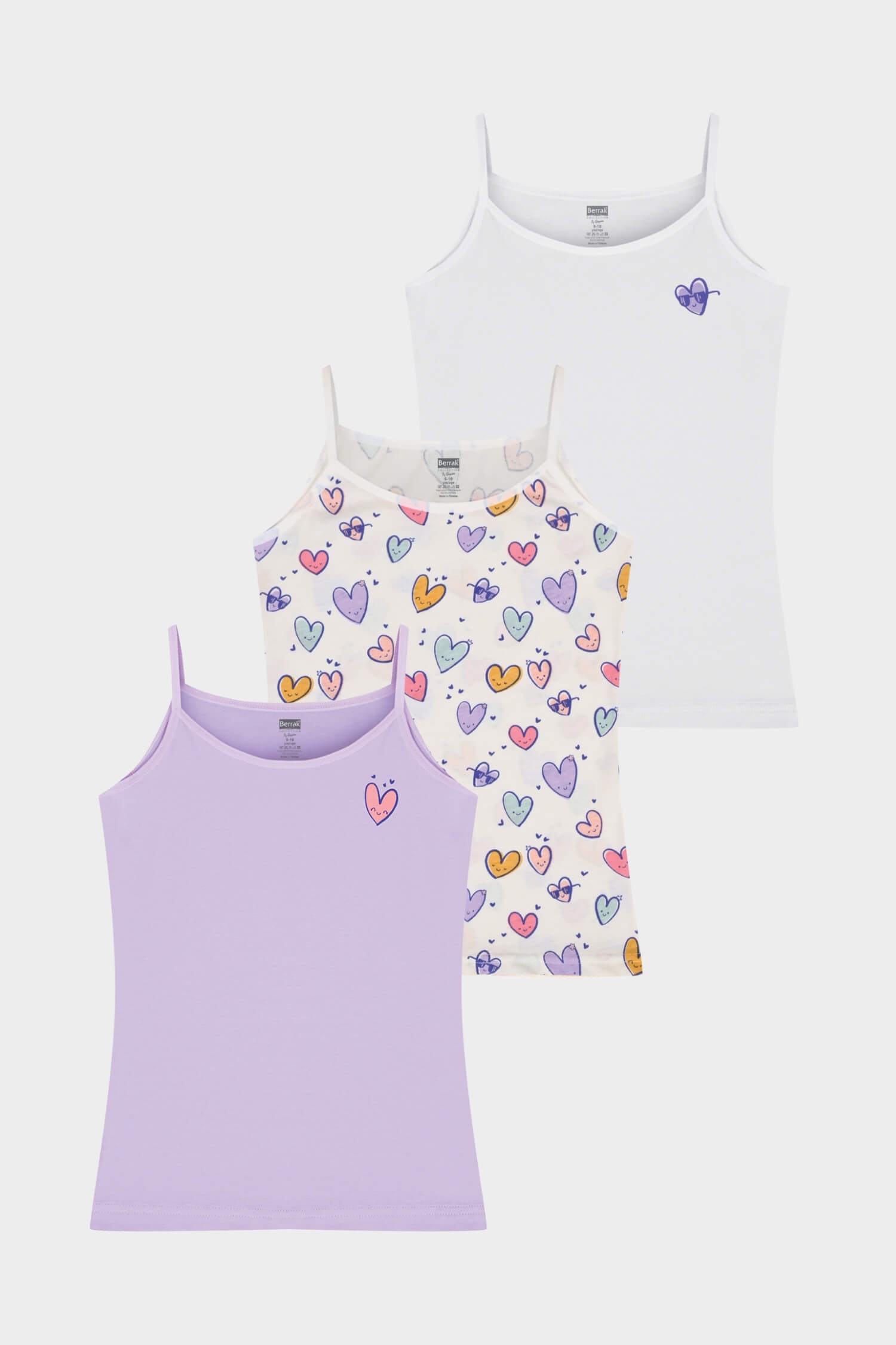 Kız Çocuk İnce Askılı Atlet – 3’lü Kalp Desenli Set 💗