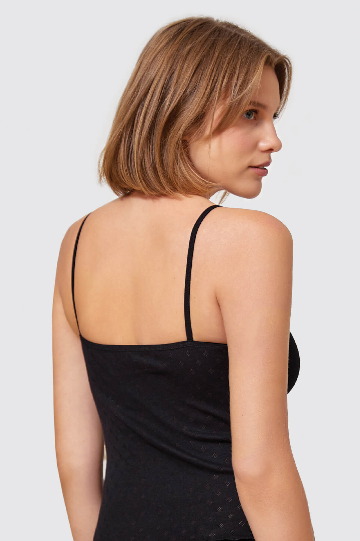 %100 pamuk kumaşından üretilen bu şık kadın atlet, zarif detaylarıyla gardırobunuzun en özel parçalarından biri olmaya aday. İnce askıları ve ön kısmındaki şık dantel tasarımı, atletinize feminen bir hava katarak stilinize zarif bir dokunuş ekler. Yaka kısmındaki şirin kurdela ise atletinize ek bir zarafet katarak göz alıcı bir detay sunar.