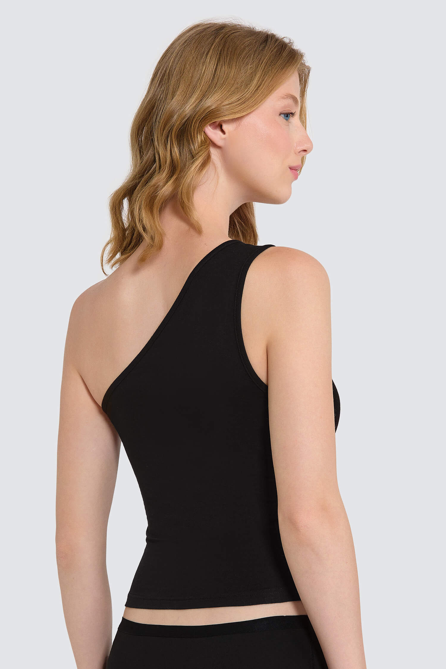 Zarif tek omuz tasarımıyla modern ve feminen bir görünüm sunan bu atlet, şıklığı ve konforu bir arada yaşamak isteyenler için tasarlandı. Vücuda nazikçe oturan yapısı sayesinde fit bir duruş sağlarken, omuz kısmındaki metal halka detayı ürüne sofistike bir hava katar. %95 viskoz, %5 elastan kumaşı sayesinde yumuşak dokulu, hafif ve esnektir; gün boyu rahat kullanım sunar. Zarif tasarımı ve modern duruşuyla stilinize sade ama etkileyici bir ıklık katar.