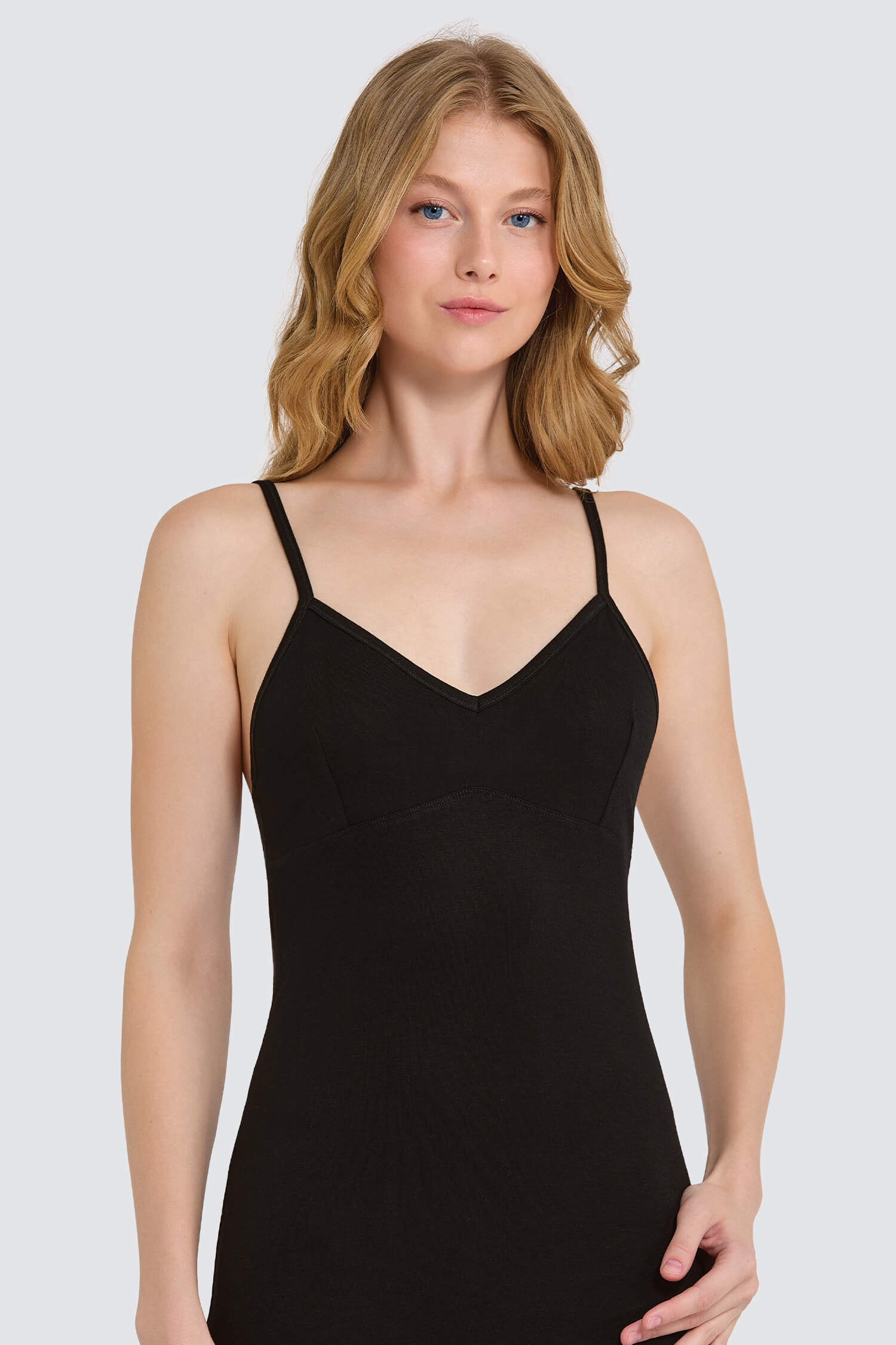 Şıklığı ve rahatlığı bir arada sunan kadın atletimiz, günlük kombinlerinizin vazgeçilmezi olmaya aday. %95 viskoz ve %5 elastan karışımı kumaşıyla yumuşacık dokunuş ve esneklik sağlar. İp askıları sayesinde feminen bir görünüm sunar.