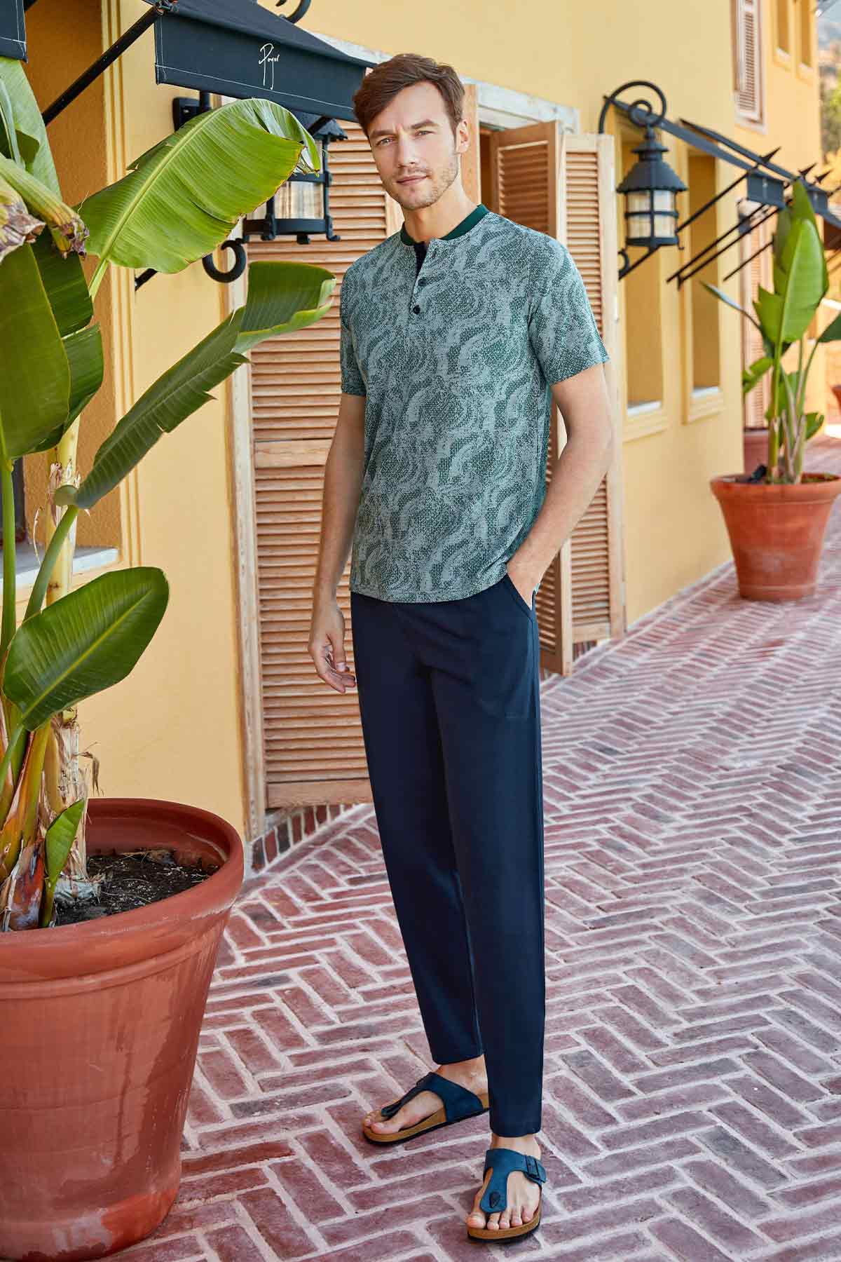 Yeşil ve Kahve Renk Erkek Pijama Takımı