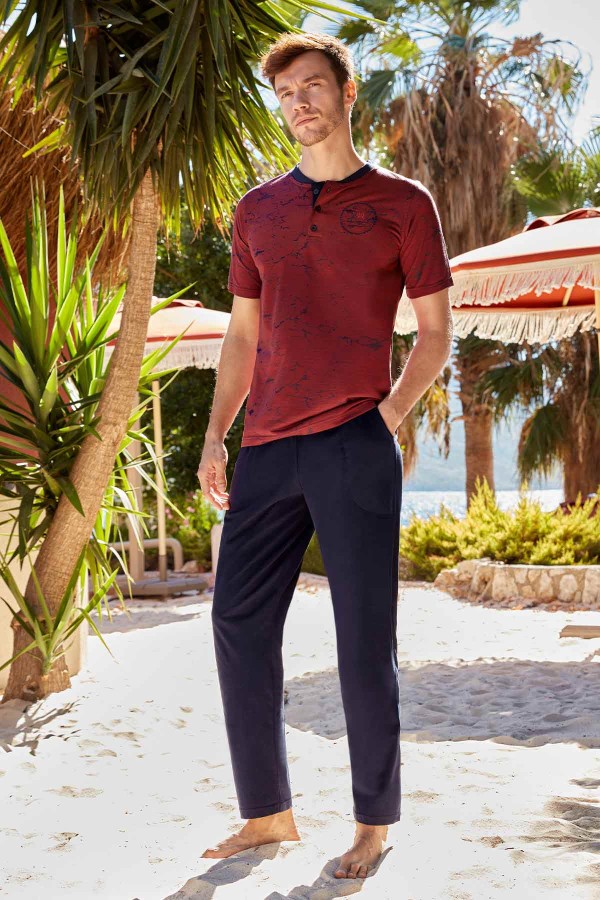 Bordo ve Kiremit Renk Erkek Pijama Takımı