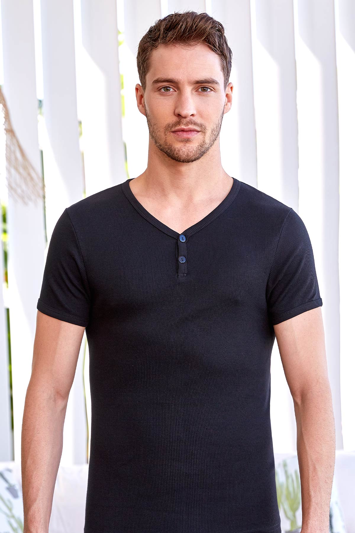 Bu model; %100 Cotton Pamuk (Siyah, Beyaz) ve %70 Poliester, %30 Cotton Pamuk (Gri Melanj) ‘den üretilmiştir.