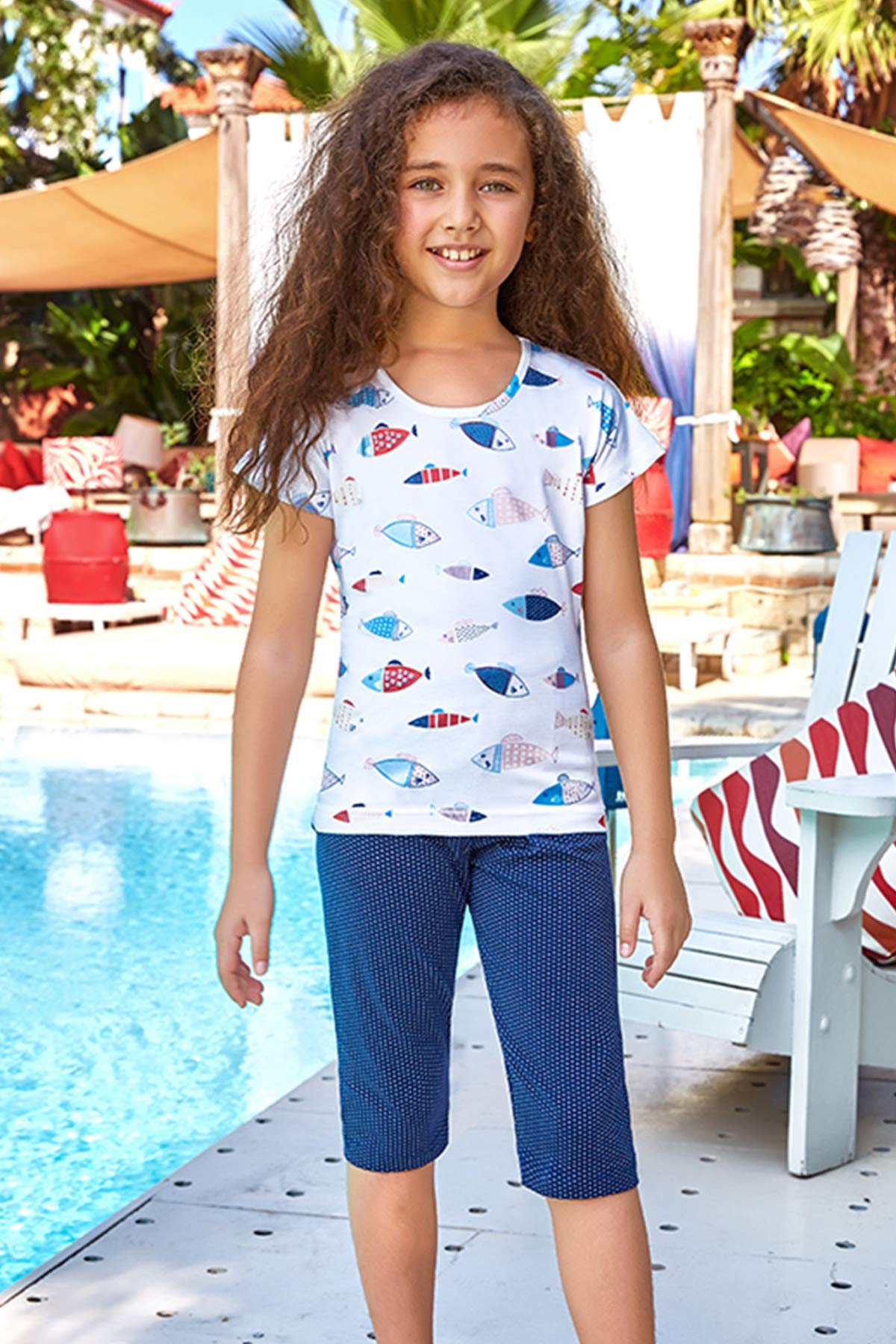Sıcak havalarda esnek ve yumuşak kumaşı ile kızınızın gün boyu rahat edeceği ve üzerinden çıkarmak istemeyeceği Berrak 5539 Kız Çocuk Kapri Takım, çocuklar için süper bir seçim!